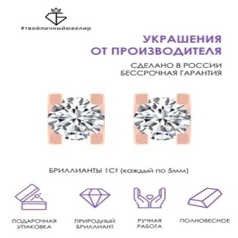 Золотые пусеты - гвоздики с бриллиантами бренда ТВОЙЛИЧНЫЙЮВЕЛИР наполнены мощной энергетикой - подойдут для девушек и женщин, которые выбирают яркость и эффектность. Роскошное и в то же время лаконичное ювелирное украшение, выполненное из розового золота 585 пробы, подчеркнет Вашу неповторимость и откроет новые возможности для стильных экспериментов. В качестве вставки в серьгах используются бриллианты, способные на свету переливаться всеми цветами радуги и издавать невероятный блеск, придавая своей обладательнице женственность и элегантность. Дизайнерские сережки пусеты, выполненные опытными ювелирами России, оснащены удобной и надежной винтовой застежкой, которая обеспечивает прочную фиксацию ювелирного изделия на Вашем ушке. Тип конструкции делает золотые серьги самыми удобными - они не мешают одеваться, не цепляют волосы и, при правильном подборе размера, не доставляют дискомфорта во время сна. Именно по этой причине серьги из золота часто выбирают не только для взрослых девушек, но и для маленьких модниц. Благодаря минималистичному, продуманному дизайну серьги-гвоздики можно легко сочетать с любыми другими украшениями и нарядами. Такие пусеты из золота никогда не выйдут из моды и всегда будут актуальны. Сережки-гвоздики – одни из самых популярных моделей, они универсальны, и их легко подобрать под любой типаж и образ, стиль одежды, возраст владелицы. Аккуратные и практичные пусеты с бриллиантом - это универсальное украшение для любого образа: на деловой встрече в комбинации со строгим офисным нарядом, на романтическом свидании, и даже на роскошном приеме. Небольшой размер сережек подчеркивает женственность владелицы и ее элегантность при любых обстоятельствах. Бриллиантовые пусеты идут всем без исключения: блондинкам и брюнеткам, смуглым и светлокожим девушкам, голубоглазым и кареглазым. Если вы хотите быть в центре внимания или же ищете украшение на торжественное мероприятие, то серьги с драгоценными камнями — это ваш вариант! Пусеты поставляются в брендированной упаковке и идеально подходят в качестве замечательного подарка на особую дату или просто так, чтобы восхитить и удивить любимую жену, маму или дочку и оставить неизгладимое впечатление. Купив ювелирные изделия от производителя ручной работы, вы получаете бессрочную гарантию! С любовью и заботой о Вас, ТВОЙЛИЧНЫЙЮВЕЛИР!