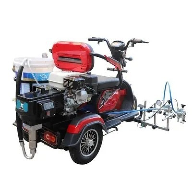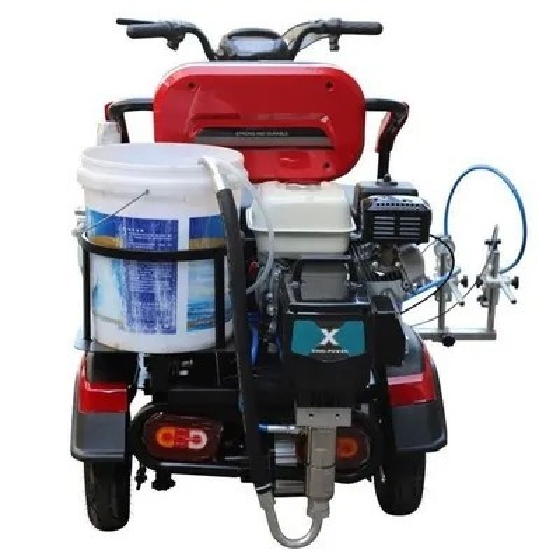 Самоходная разметочная машина DP-6335LSP предназначена для нанесения сплошных и прерывистых линий краской на дорогу, разметки пешеходных переходов, нанесения дорожных знаков и надписей на дорогу, разметки парковочных мест около магазинов и выставочных залов, разметки спортивных площадок и футбольных полей.Также машину можно использовать для разметки дорожных бордюров, мостовых конструкций, столбов фонарного освещения, как бензиновый окрасочный агрегат и красить фасады зданий и бетонные заборы. Разметочная машина DP-6335LSP оснащена передними светодиодными фарами и задними фонарями. Указатели поворота переключаются на руле. Установлено зеркало заднего вида и звуковой сигнал для безопасного движения по дорогам. Имеет 3 скорости движения вперед и задний ход. Управление окрасочными пистолетами выведены на руль и удобны для использования. Присутствуют фиксаторы различных органов управления разметочной машиной DP-6335LSP.·         Высокая скорость дорожной разметки ·         Окрасочный пистолет снимается с  крепления и им можно наносить краску вручную по шаблону, размечать пешеходный переход или рисовать знаки дорожного движения.·         Емкость с краской устанавливается непосредственно на машину·         На машине 6315L установлен шланг 15 метров, который позволяет вручную наносить краску на удалении от машины.·         Производительность - 4 л/мин.Двигатель - ХондаМаксимальное рабочее давление - 2 175 Psi / 150 барМаксимальная скорость подачи - 4 литров в минутуМаксимальный размер наконечника - 0,019 дюйма / 2 распылительДвигатель - 6 НР