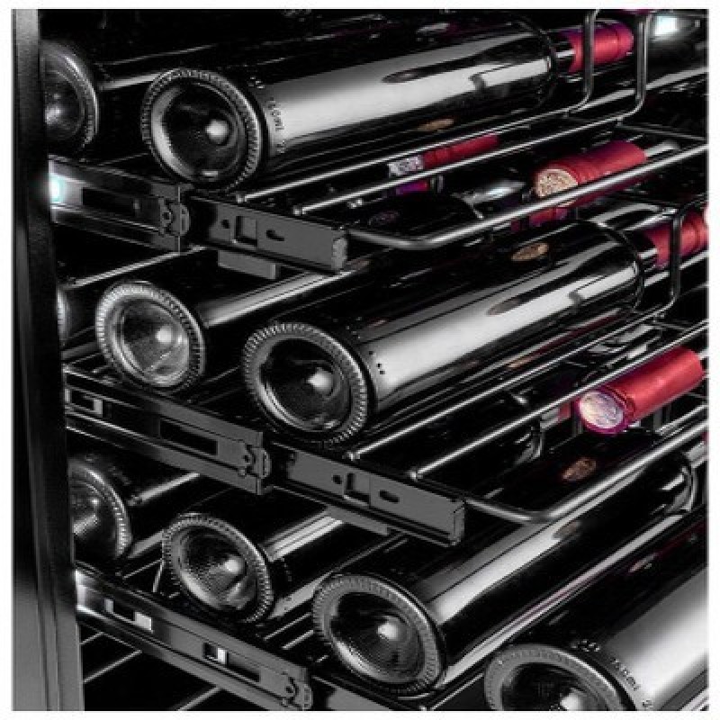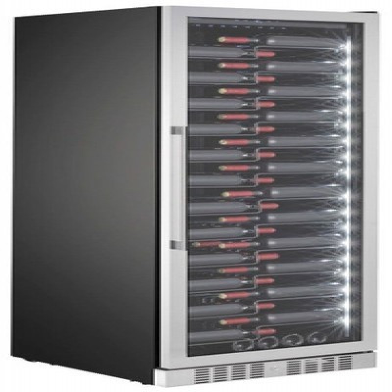 Общие данные:Размеры:высота: 183,5  смширина: 65,5 смглубина: 68 смОбъем: 490 лМаксимальное количество бутылок: 143Тип управления: электронныйКлиматический класс: N (от +16°C до +32°C)Класс энергопотребления: FГодовое энергопотребление (кВт*ч): 128Цвет корпуса: ЧёрныйЦвет дверцы: ЧёрныйКоличество температурных зон: 1Диапазон температур: 5-20°СТип системы охлаждения: компрессорныйВинное отделение:Полки: 12Подсветка (белая)Винный шкаф оборудован вентиляторами, которые обеспечивают циркуляцию воздуха. Конденсат в винном шкафу используется повторно и, таким образом, поддерживает оптимальную влажность, а фильтр с активированным углем обеспечивает свежий и чистый воздух в холодильнике для вина.Дополнительная информация:Винный шкаф оборудован специальными полками,  которые элегантно демонстрируют винные бутылки и этикетки вашей коллекции.Стеклопакет дверцы заполнен аргоном, что существенно снижает теплопотери, а УФ-фильтр защищает вино от вредных ультрафиолетовых лучей, которые могут проникнуть внутрь холодильника.Светодиодная подсветка находится сбоку для лучшей подсветки этикеток.Об охлаждении винного шкафа заботится тихий компрессор с низким уровнем шума и меньшим потреблением электроэнергии. Компрессор не только бесшумный, но и опирается на наши специально разработанные ножки, которые защищают вино от вредных вибраций.Замок двериХладагент: R600a Уровень шума (дБ): 40