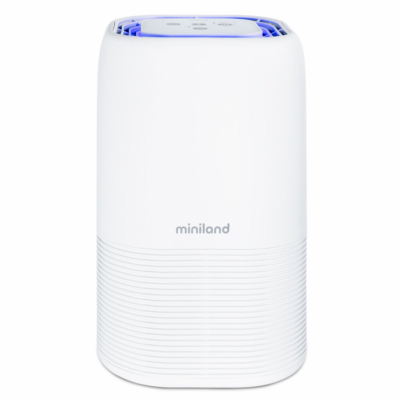Miniland BabyPure 5 - самый современный очиститель воздуха с функцией ионизации для глубокой очистки. 5 уровней фильтрации: 1. Предварительный фильтр удаляет крупные частицы 2. HEPA фильтр удаляет мельчайшие частицы размером до 0,3 мкм (например, аллергены, пыльца, пыль или споры) 3. Фильтр с активированным углем поглощает нежелательные запахи в комнате. 4. Уровень очистки осуществляется с использованием ультрафиолетовых лучей, которые устраняют 99% бактерий, вирусов и микробов. 5. Еще более глубокий уровень с функцией ионизации для улавливания загрязняющих частиц с помощью отрицательных ионов. Помимо этого, умный гаджет имеет ряд отличительных особенностей и функций. 2 варианта ночного режима: без подсветки и как ночник (светильник с мягкой голубой подсветкой). Подходит для маленьких комнат в квартирах, загородных домах, офисах, площадью до 15 кв. метров. Цветовой индикатор качества воздуха. Таймер отключения. Сенсорная панель управления. 4 скорости потока (включая турбо-режим). Портативный. Красивый лаконичный дизайн впишется в интерьер любой, в том числе и детской комнаты. Бесшумный. Прост и безопасен в эксплуатации. Оснащен фильтром 3-в-1 для удаления пыли и неприятных запахов из воздуха